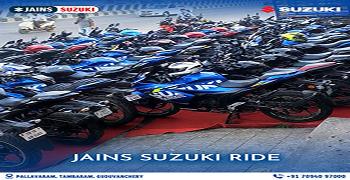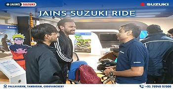 Established in 2008, JAIN'S SUZUKI, Pallavaram is one of the most well-known and trusted Suzuki Bike Showroom in Chennai(Pallavaram). JAIN'S SUZUKI is an authorised Suzuki Motorcycle Dealer with a state-of-the-art showroom where you can check out the new Avenis,take it out for a test ride, and book your dream ride. On our website, you can explore the entire range of two-wheelers by Suzuki Motorcycles. You can also find out the ex-showroom price of different variants, calculate EMI, get a callback, and even book a suitable time slot for a test ride. Check out your favourite Suzuki motorcycles and scooters conveniently, with the easy-to-use filters to simplify your search. JAIN'S SUZUKI offers the entire range of Suzuki Motorcycles, Big Bikes, and Scooters in the Avenis from JAIN'S SUZUKI,check out its features, take it for a ride, get a quote, and book your favourite bike from the entire range of Suzuki motorcycles and scooters in. At JAIN'S SUZUKI, you can also avail two-wheeler finance to buy your favourite ride.